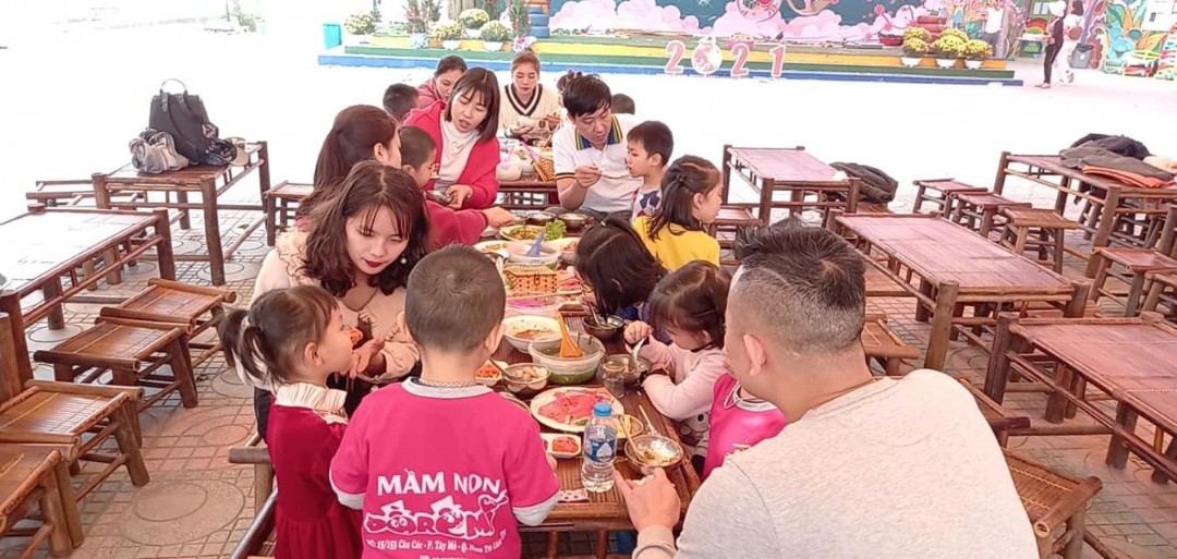 Trường có đầy đủ cơ sở vật chất, giáo viên đạt chuẩn. Thực đơn bán trú cho các con phong phú, đủ dinh dưỡng để phát triển thể chất!